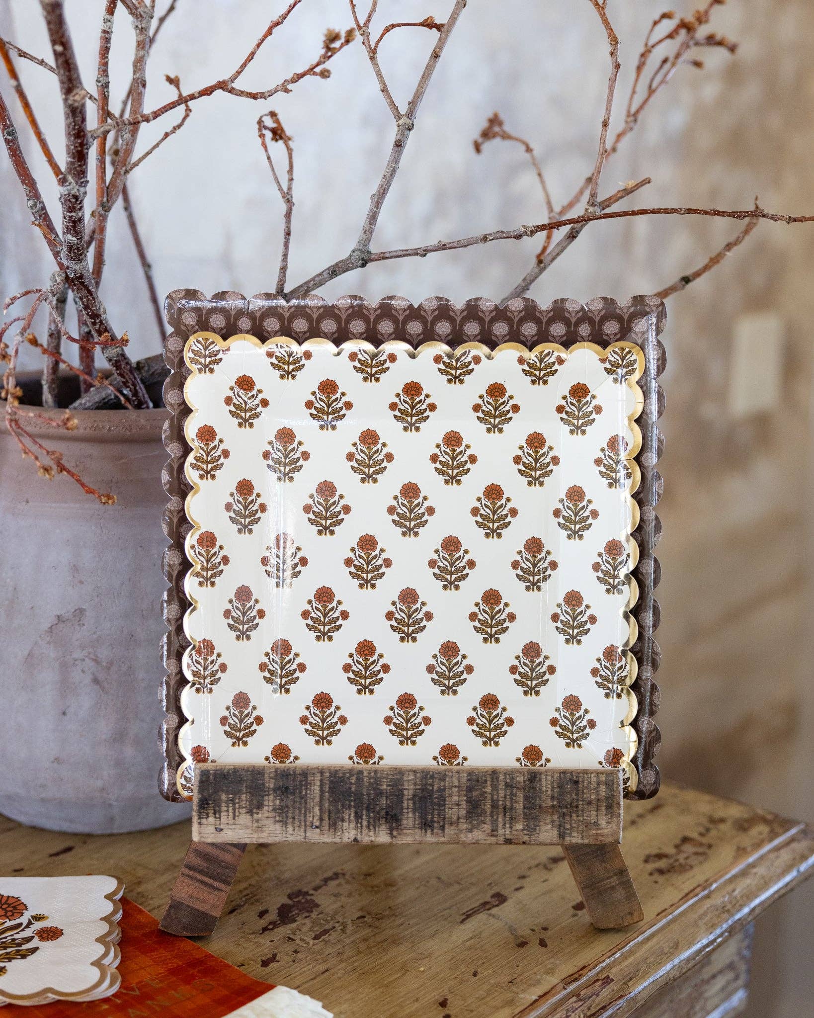 Add a touch of elegance to your party with our Give Thanks Dark Floral Plate. Perfect for your harvest gathering, this plate features a beautiful floral design that will impress your guests. Show your gratitude and set the tone for a memorable event. • includes 8 shaped paper plates